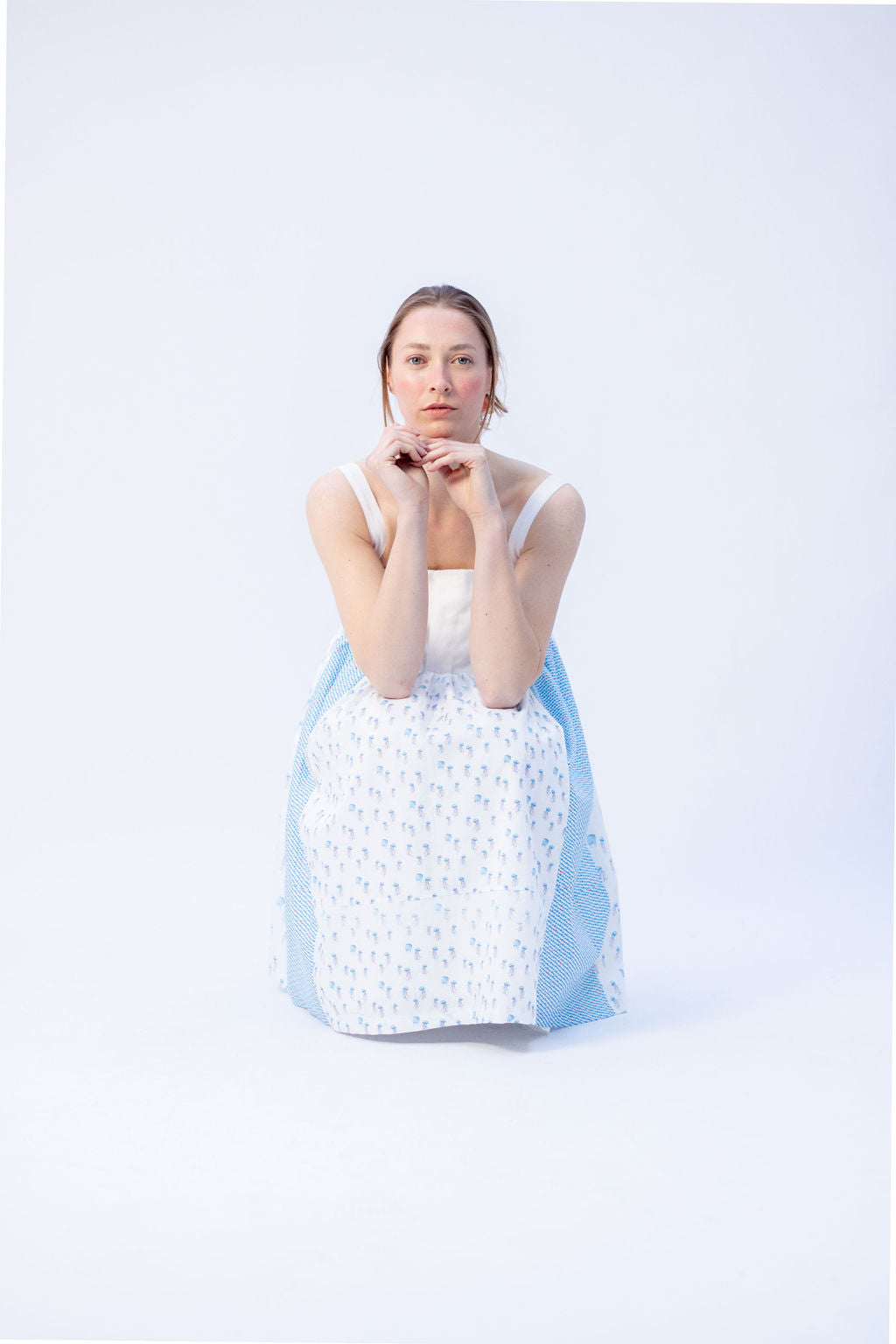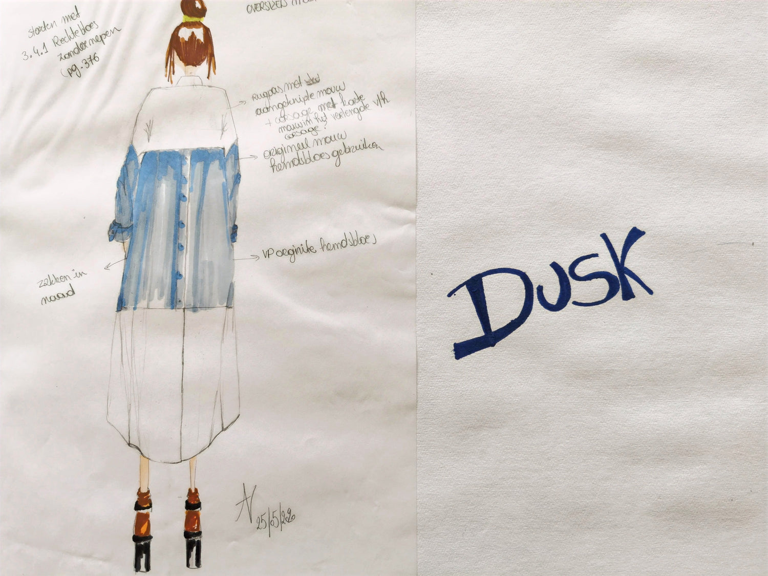 My design process starts with a theme. The inspiration is something I see, feel or even a mood. This leads to drawing shapes, illustrations, silhouettes and looking for colors and prints. The fabrics I use are leftovers from te industry and second hand clothes. It's a real treasure hunt to find these pieces of fabric, so my design process takes time and the clothes that I make out of these treasures are unique and limited. I don't do seasons, I don't want to make a lot of clothes, I just want you to love and cherish them. Slow en conscious, that's what I like.