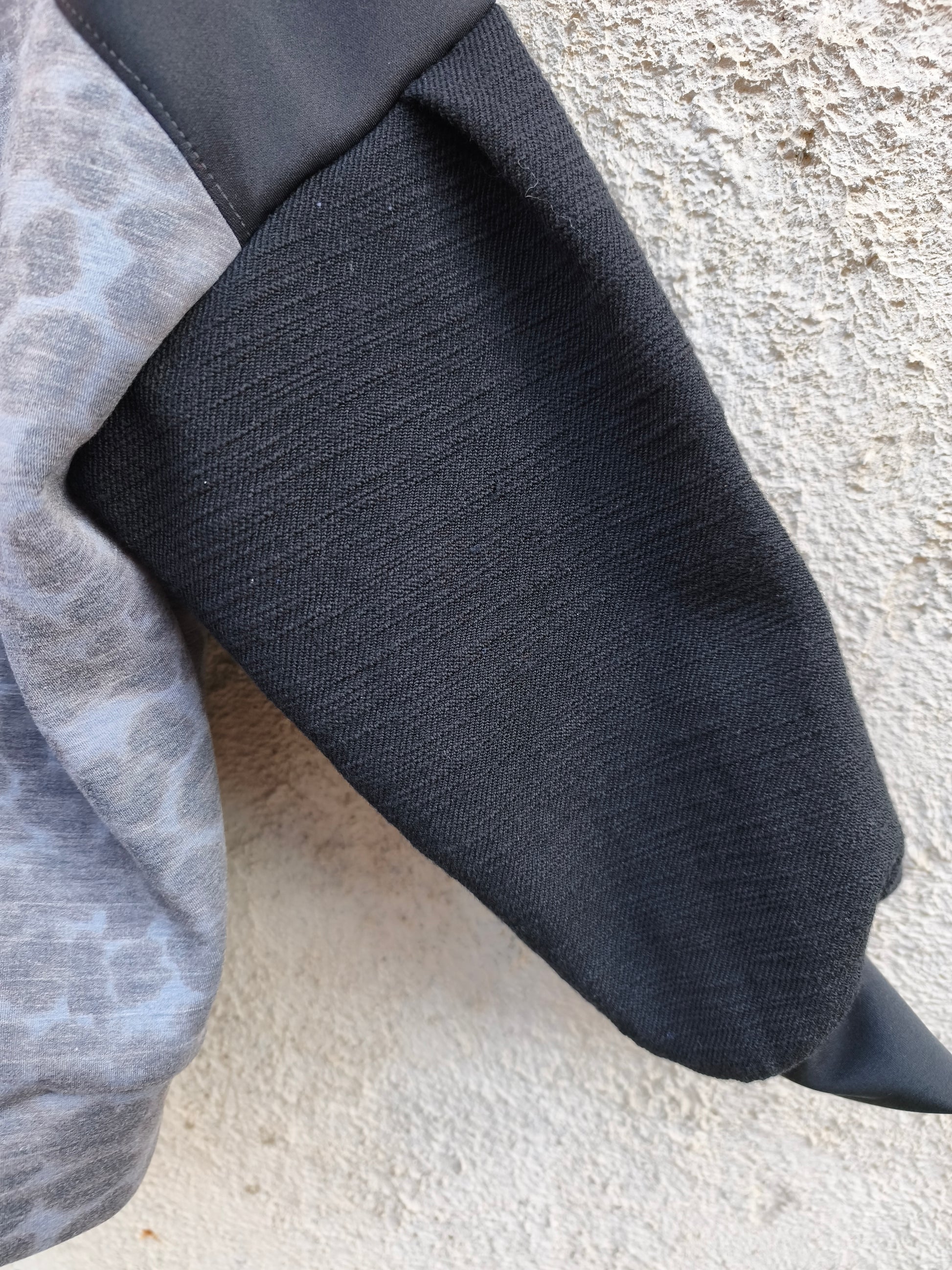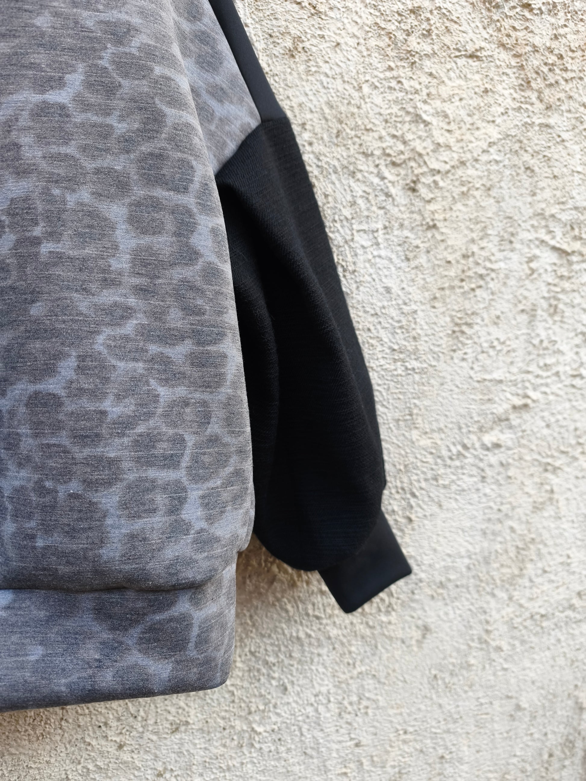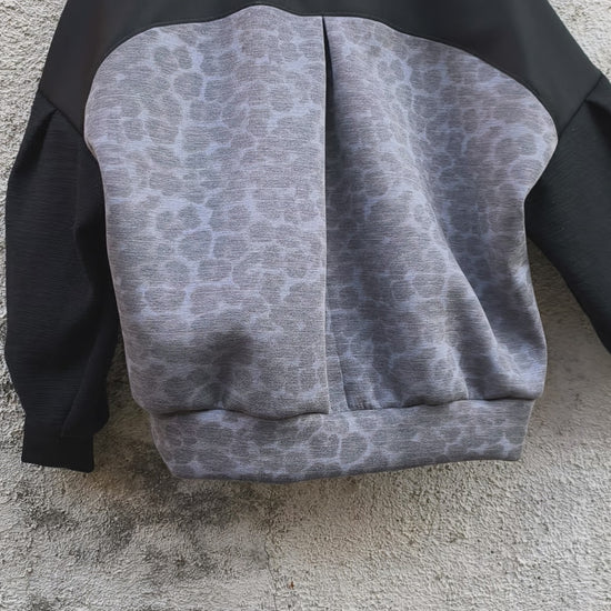 FABRIC: leftovers leopard neoprene fabric. Sleeves in black wool leftover from production by Dries Van Noten.